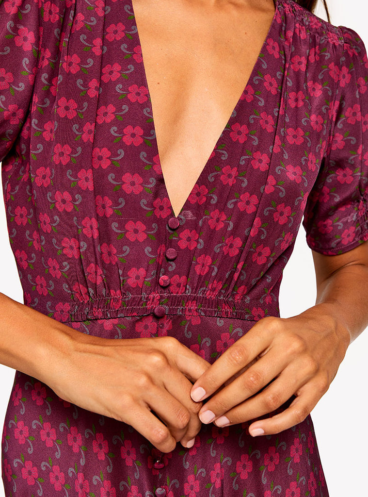 Inspired by the vibrant colors of Porto, this fully lined midi dress pays homage to the beautiful city of Faro through its floral print. Its flattering cut enhances femininity and offers an irresistible silhouette. Indulge in the beauty and sophistication of Faro with this captivating midi Dress, perfectly blending elegance, charm and the comfort you crave.