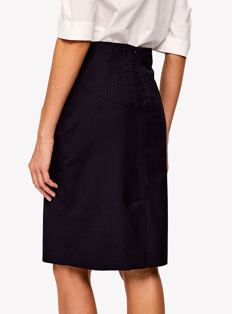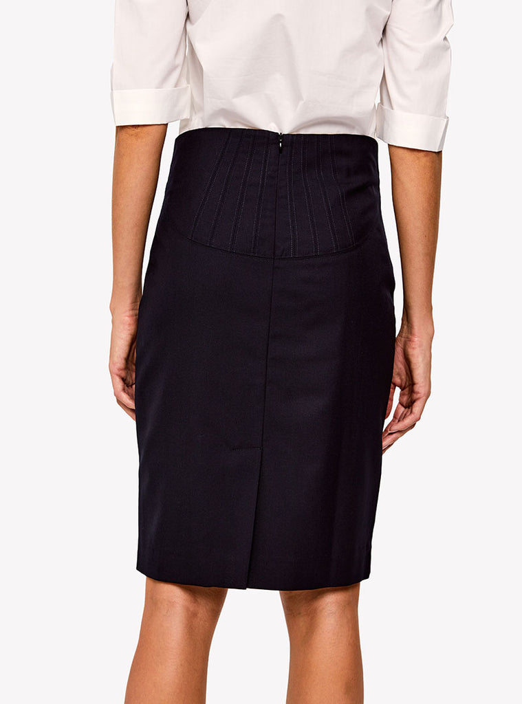 Sculpter la sophistication : notre jupe de tailleur droite, dotée de panneaux arrière ajustés, accentue parfaitement la courbe féminine pour une silhouette puissante mais équilibrée.