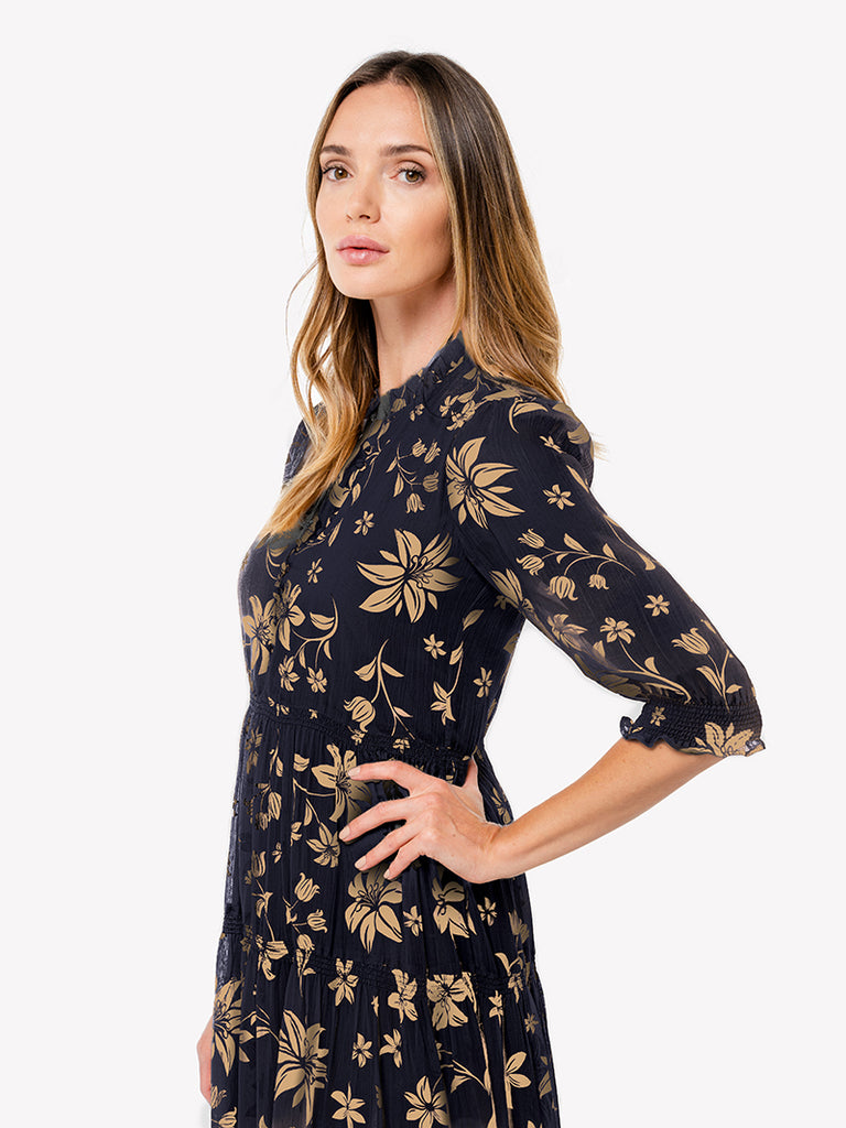 Robe mi-longue à volants et imprimé Lili