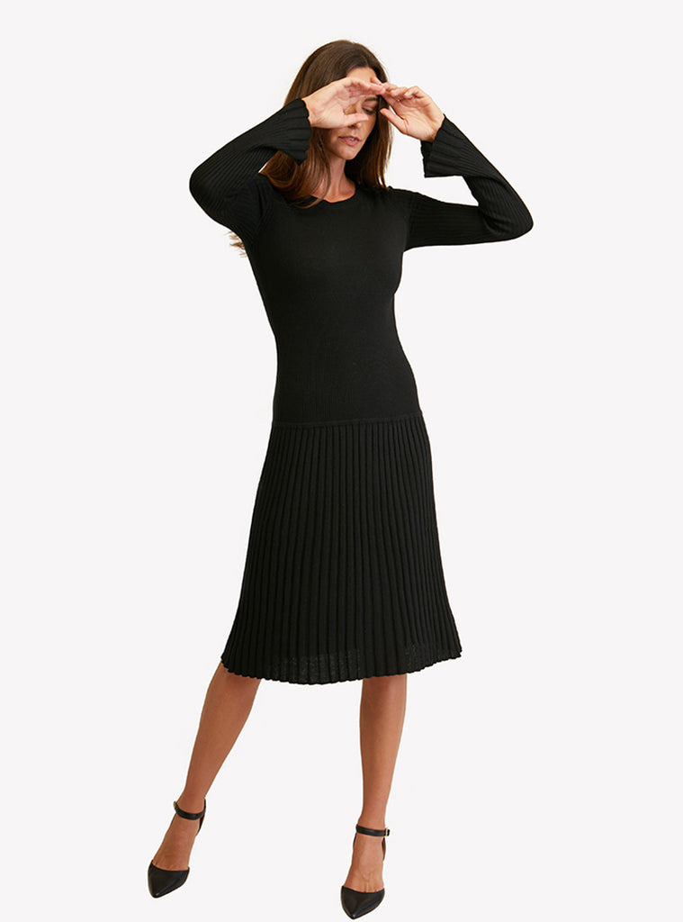 Robe en tricot à col en U et manches évasées.